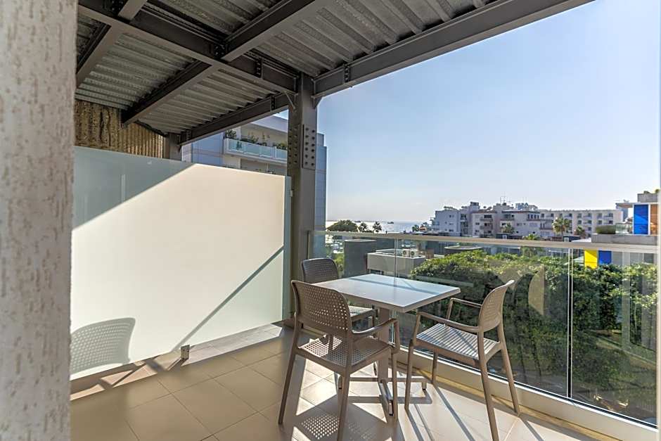 Opening to a balcony with side views of the Mediterranean Sea, this room offers a satellite, flat-screen TV.